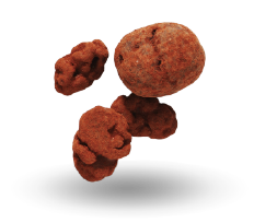 百分之百濃郁的巧克力來自於乾燥的可可果實,口感清脆有嚼勁,巧克力香氣將流連忘返於唇齒之間。
